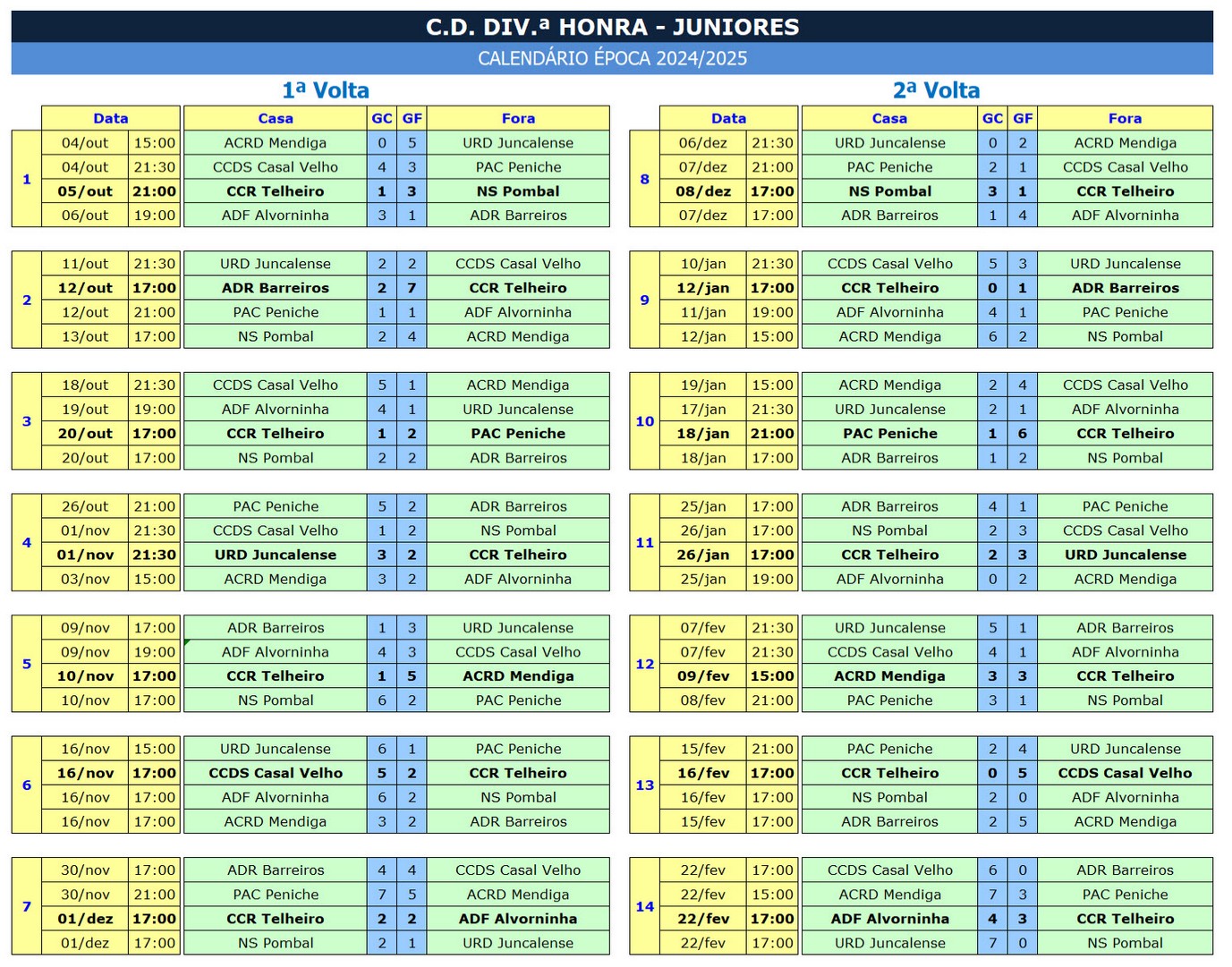Calendário Juniores - CCRTelheiro